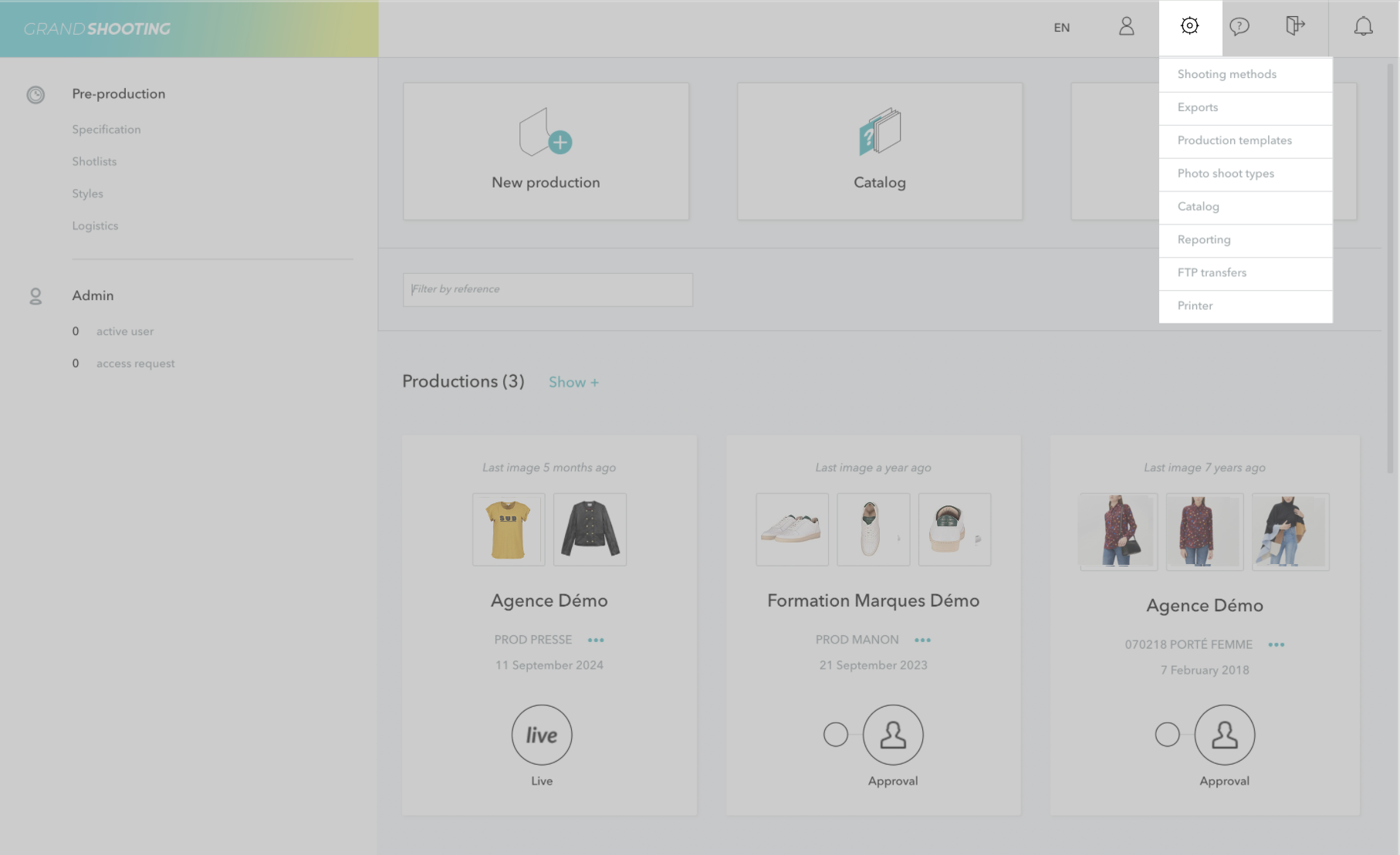If the export is systematically applied to your productions, you can save it in a template from the general settings of the application > Production Template.