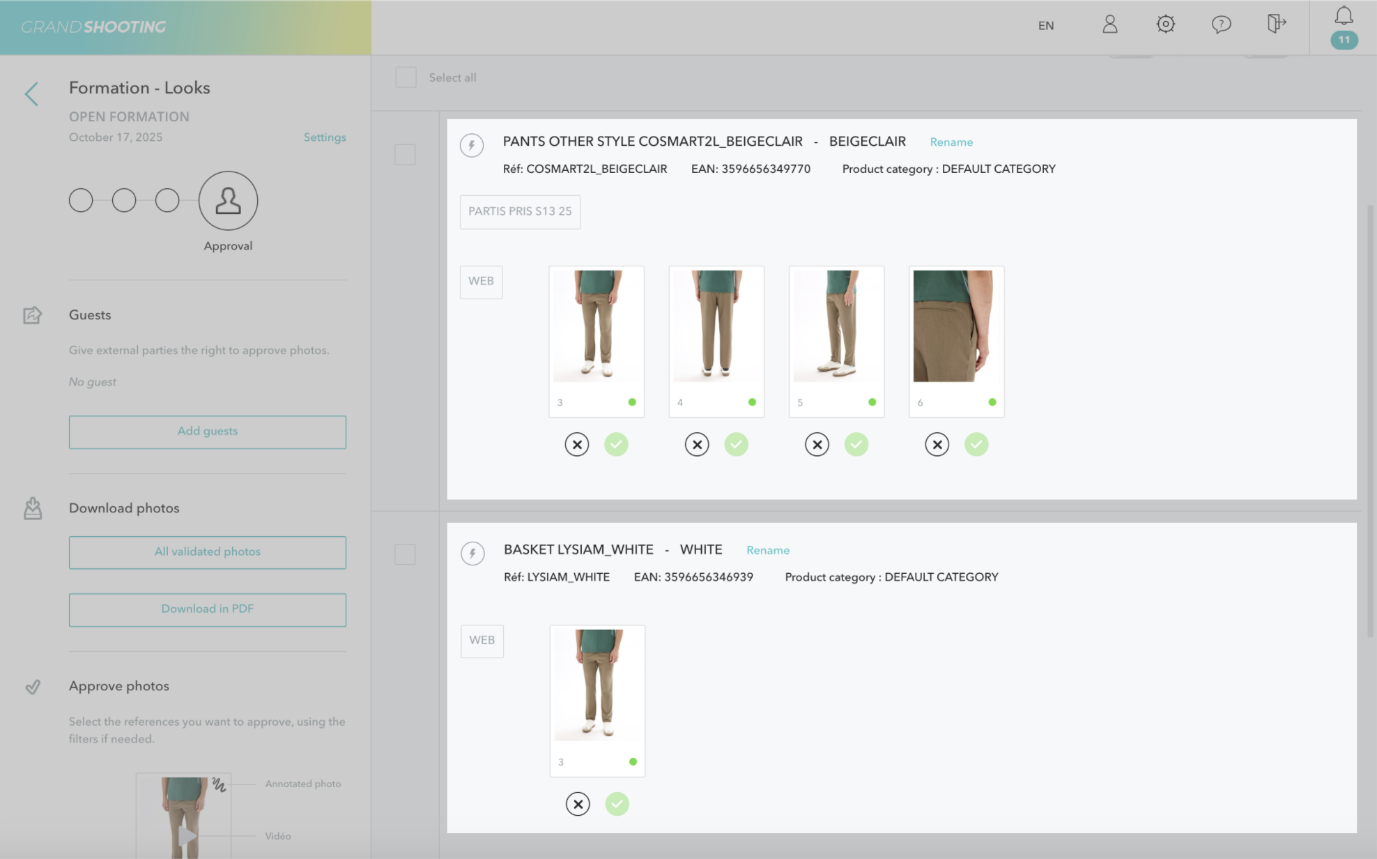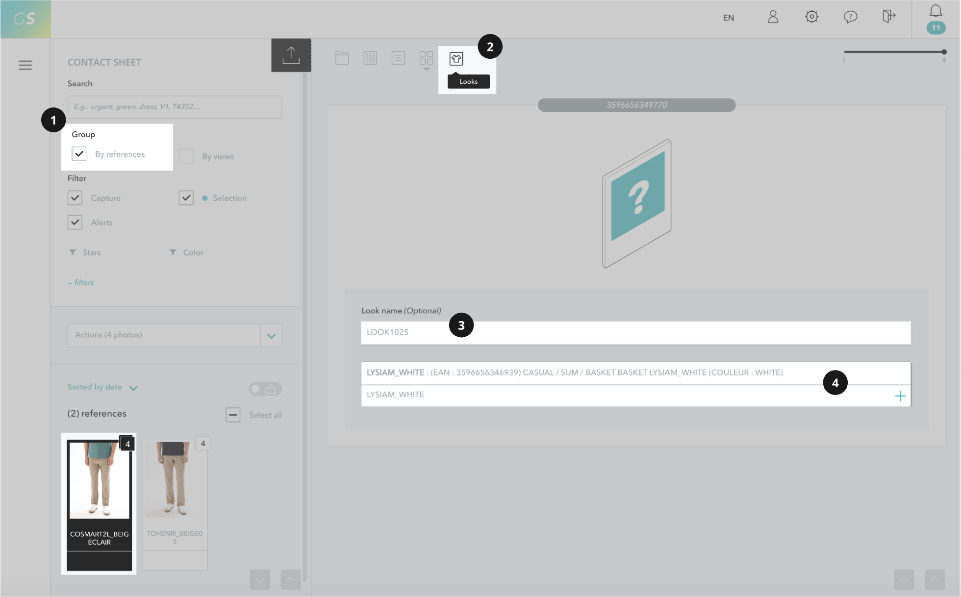 Une fois que vous avez complété vos looks, Grand Shooting garde en mémoire les références présentes sur les fichiers validés.