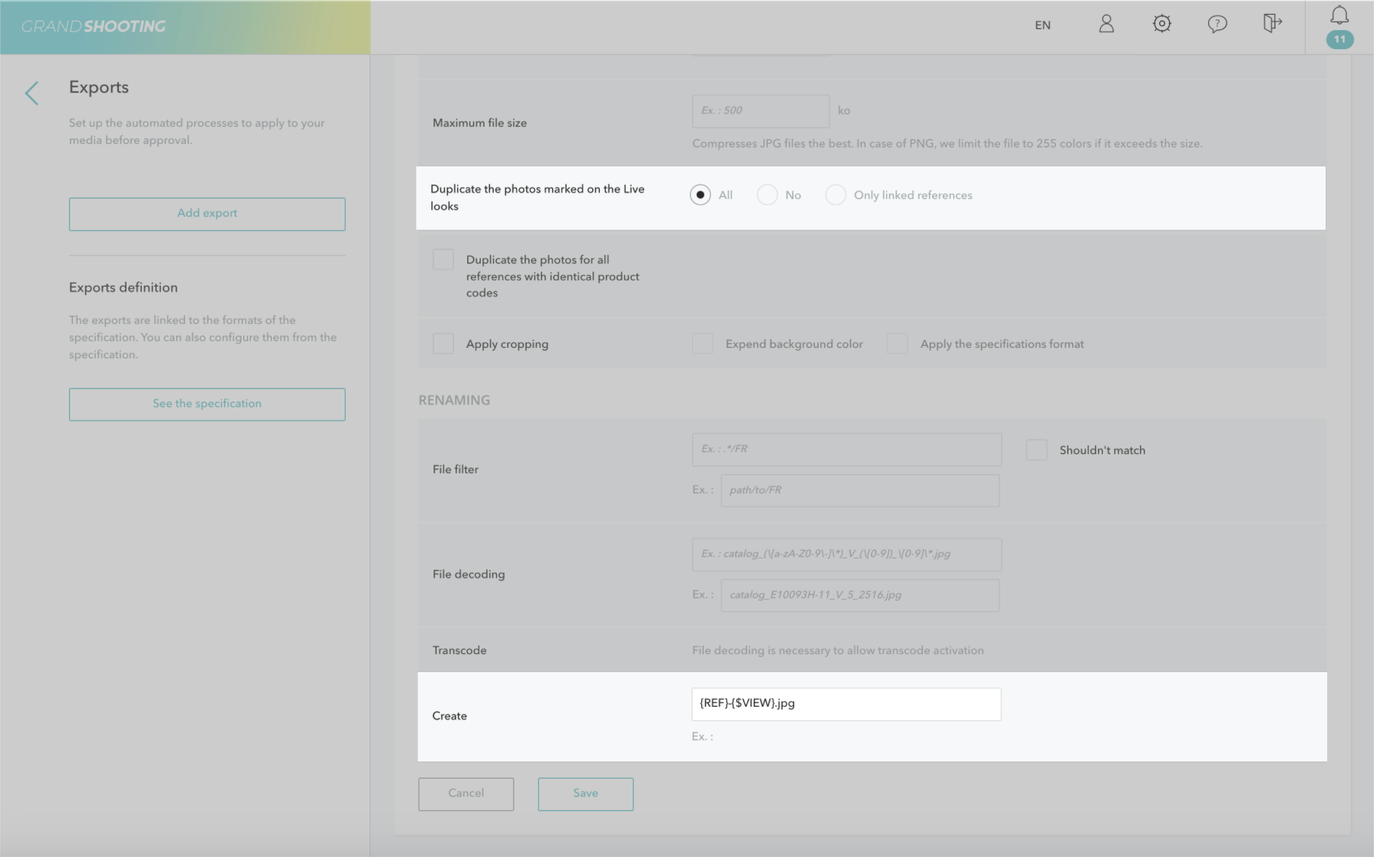 Le cross-sell consiste à proposer sur les sites web au consommateur de compléter sa commande avec le reste du look présent sur un fichier. Il s'agit le plus souvent d'un fichier Excel que les utilisateurs chargent dans leur système d'information pour alimenter le site web. Grand Shooting permet de le générer simplement.